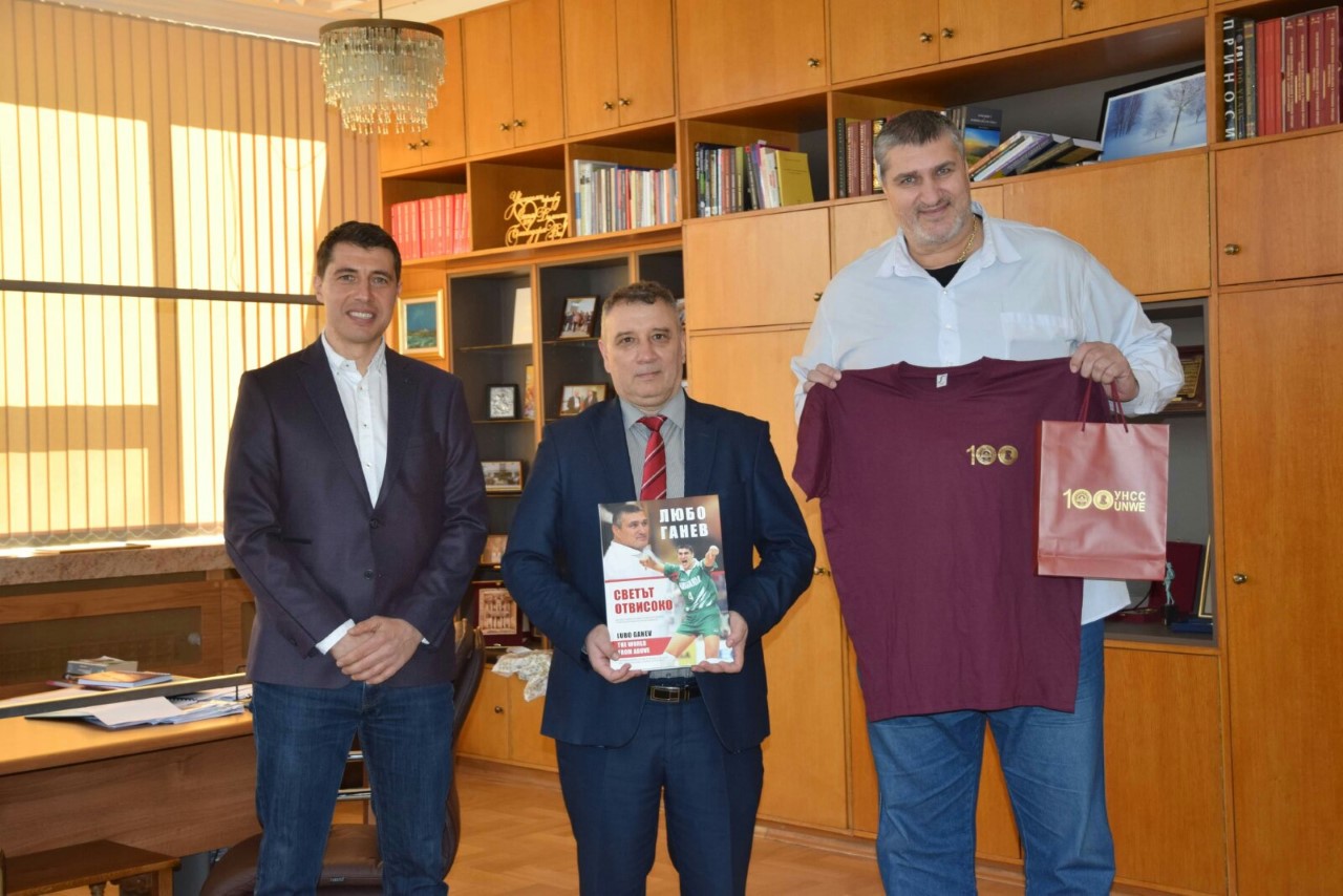Ректорът проф. доктор Димитър Димитров посрещна в кабинета си Любо Ганев, президент на Българската федерация по волейбол. Бяха разисквани опциите за взаимни планове.