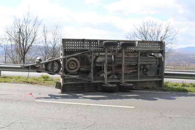 Ремарке, пренасящо лек автомобил, се откъсна от теглича и се обърна на интернационален път Е-79 на изхода на Благоевград в посока пътен възел Рилци - Бело поле.