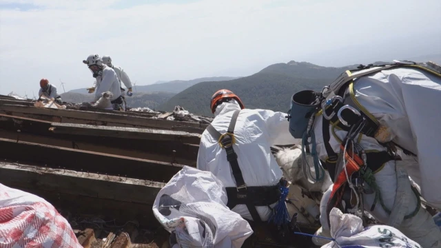 „ Работим по почистването на покрива. Има много дървена структура, стъклена вата, железни греди, които към този момент не са заварени. Заварките са скъсани. Обезопасяваме в допълнение. Гледаме да пазим през това време мозайките и всичко към нас, както и мраморът изпод. Работата е тежка. Работим с маски, с които доста мъчно се диша поради ватата по тази причина става малко по-бавно “, споделя алпинистът Румен Георгиев.