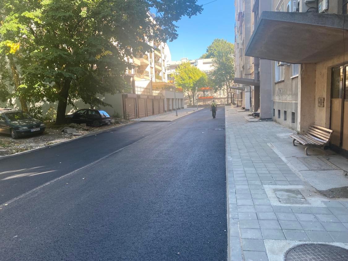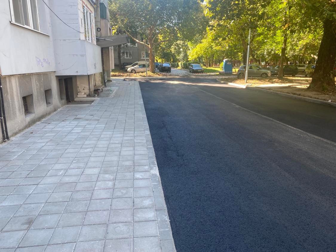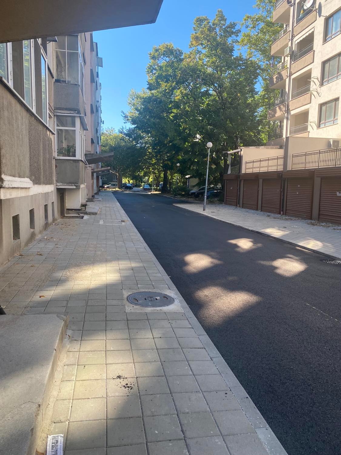 Изграден е напълно нов тротоар пред блока, улицата и паркингът са преасфалтирани, с нови дъждарки и обособени 40 паркоместа. Направена е профилактика на осветлението. Отпушена е канализацията и е заменено компрометирано сградно отклоняване, което е създавало дългогодишни проблеми с наводняване на избите в блока.