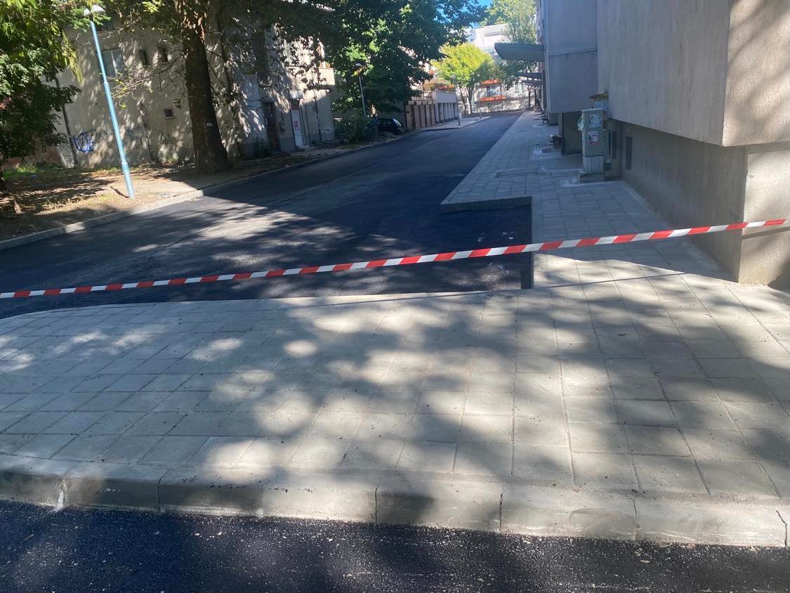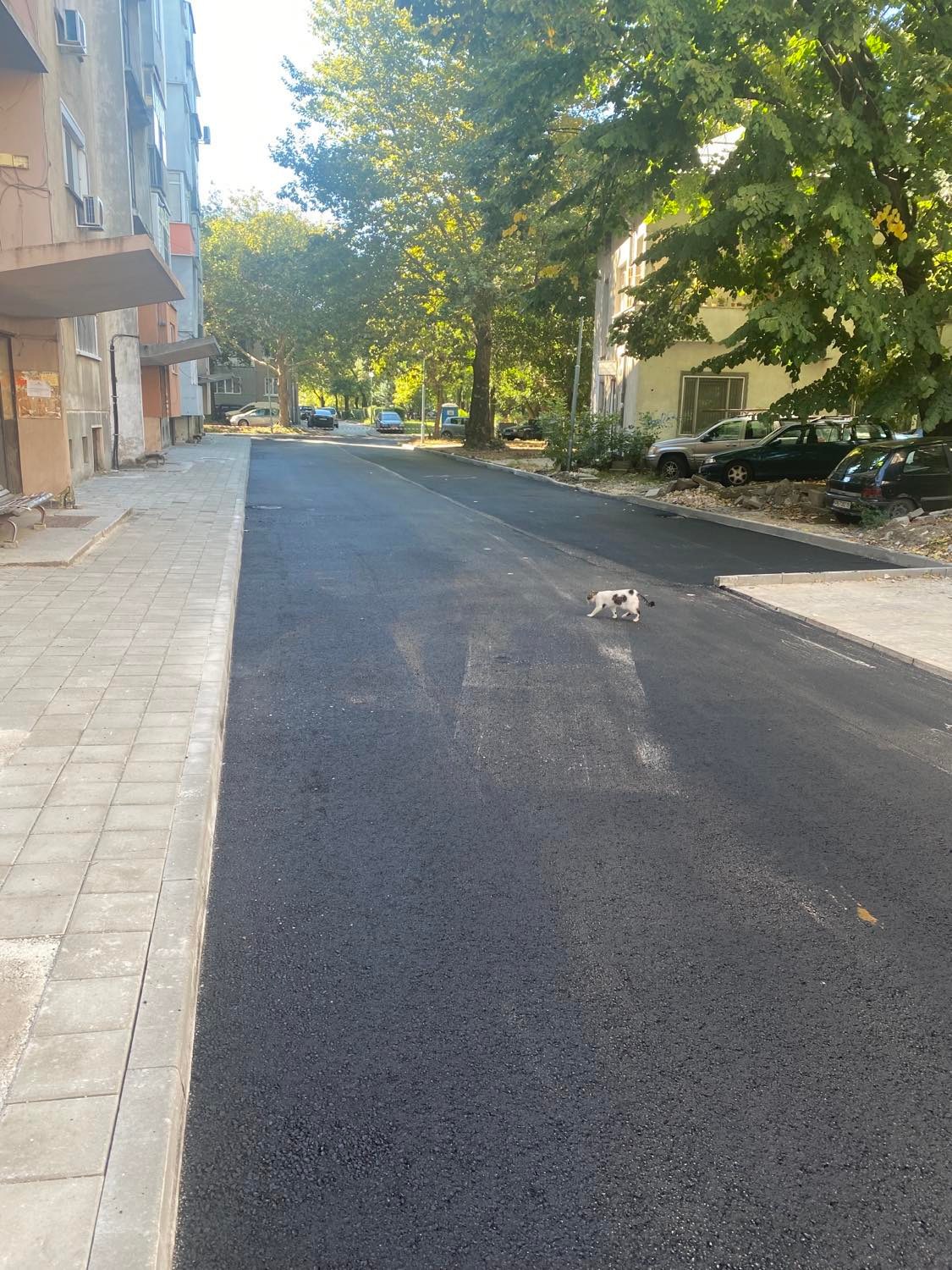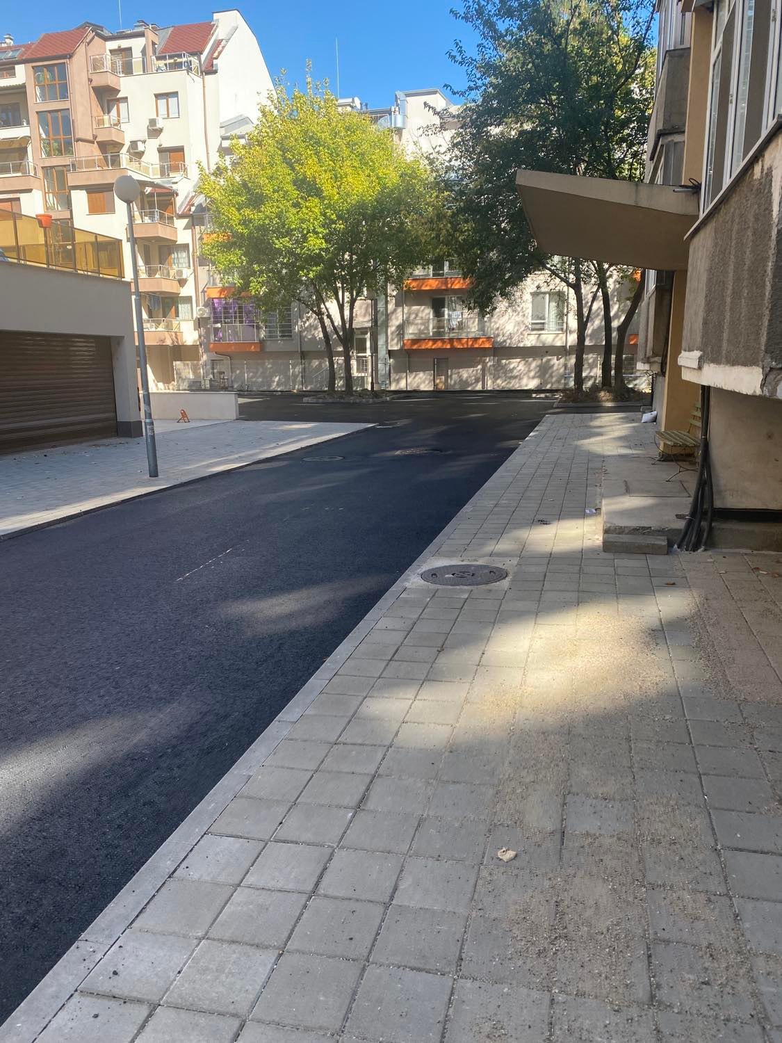 Изграден е напълно нов тротоар пред блока, улицата и паркингът са преасфалтирани, с нови дъждарки и обособени 40 паркоместа. Направена е профилактика на осветлението. Отпушена е канализацията и е заменено компрометирано сградно отклоняване, което е създавало дългогодишни проблеми с наводняване на избите в блока.