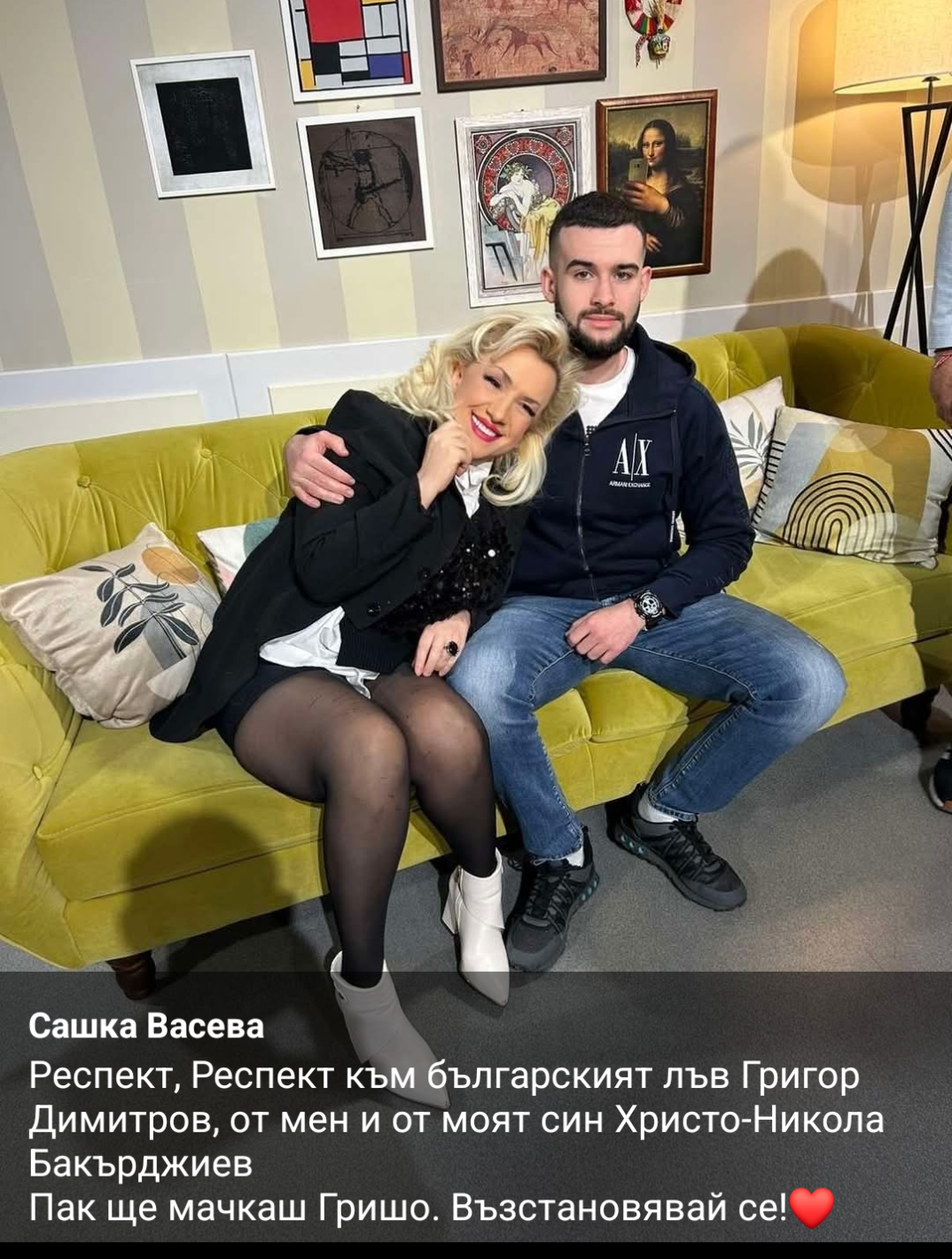 " Респект към българския лъв Григор Димитров от мен и моя наследник Христо-Никола Бакърджиев. Пак ще мачкаш, Гришо. Възстановявай се! "