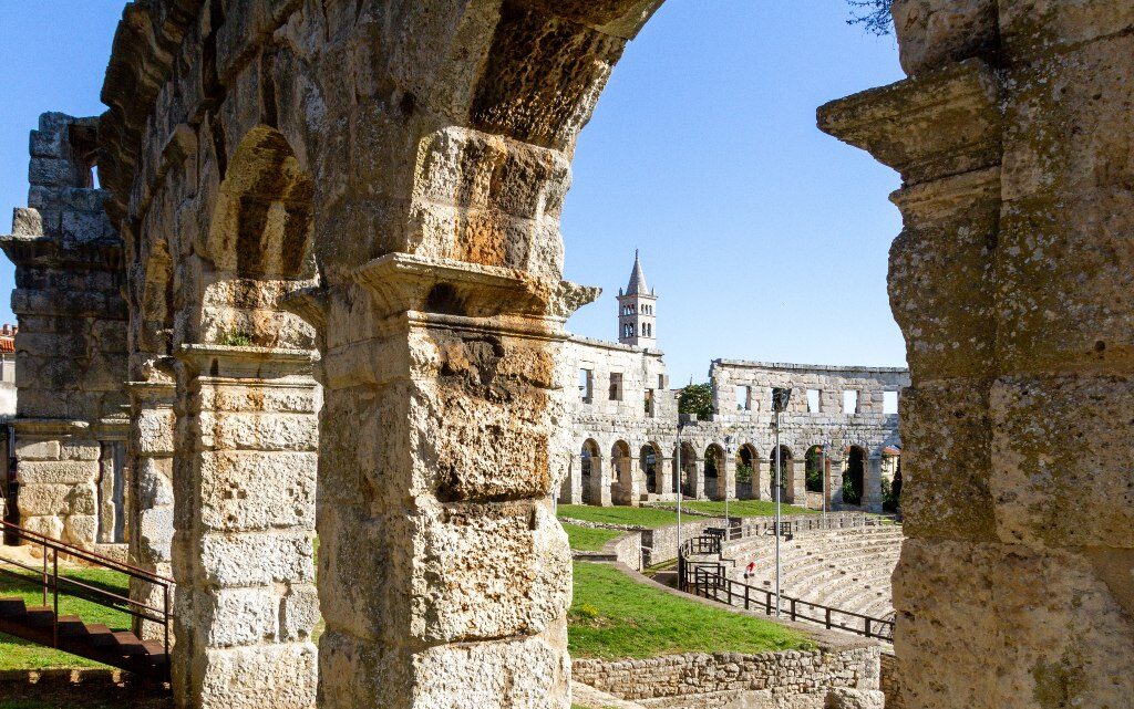 Наричат Колизеума в Пула по-малкия брат на Колизеума в Рим. Тази изключителна антична конструкция през днешния ден е непокътната в доста положително положение и е една от гордостите на хърватския град. Арената е издигната по времето на император Веспасиан и се е употребила за гладиаторски борби. Според специалистите побира към 23 хиляди души. Около 404 година гладиаторските игри са неразрешени, след което Амфитеатърът е бил употребен като пазар. Днес Колизеумът в Пула е измежду шестте най-големи оживели римски арени в света и необичаен образец за софтуерни решения, измежду общо 200 римски амфитеатри, оживели до наши дни.