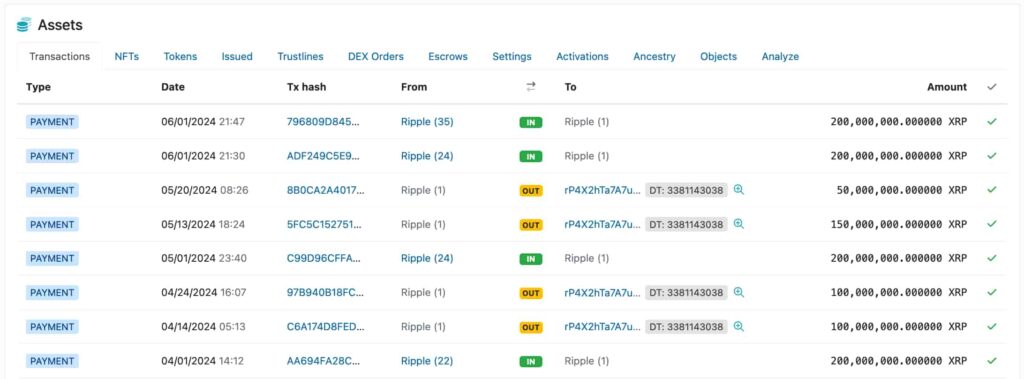 - ‘Ripple (24)’ първо трансферира 200-те милиона XRP за разпродажбата през май на ‘Ripple (1)’.