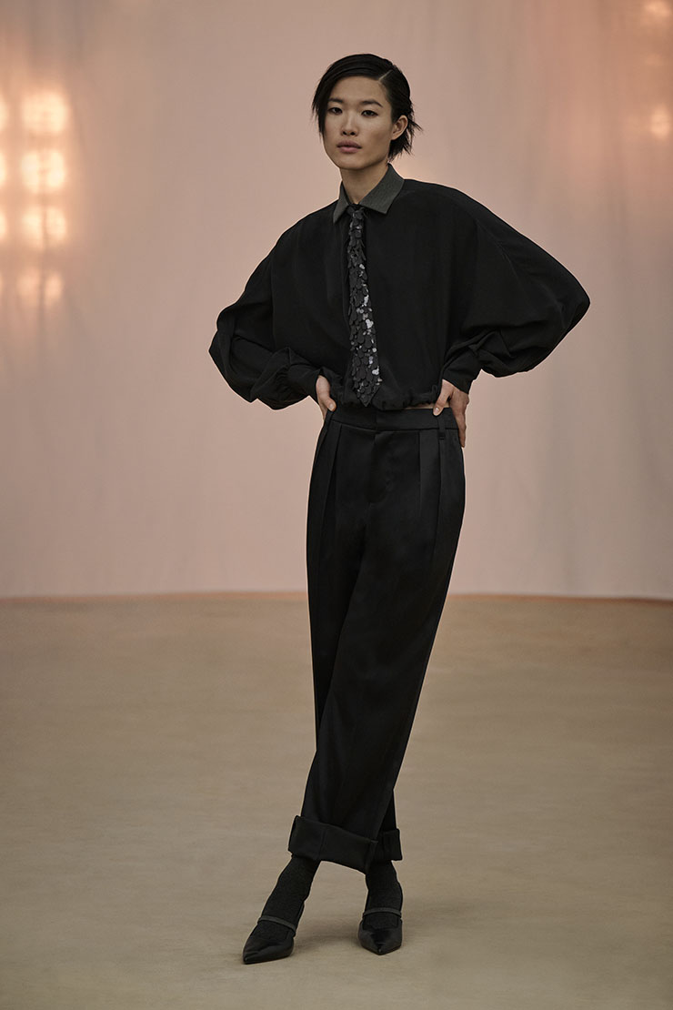 Ритмична компактност, богати мелодии и интерлюдии са отличителните белези на дамската сбирка есен-зима 2023 на - отличителна композиция от звуци, уравновесен отбор от постоянно и модерно.Хармоничност, основана на чисти линии, чисти цветове и компактни материи, въодушевени от 90-те години на предишния век, основават изчистени и привлекателни ансамбли, които поддържатплавно преплитане на мелодии и образуват стилов синтез.