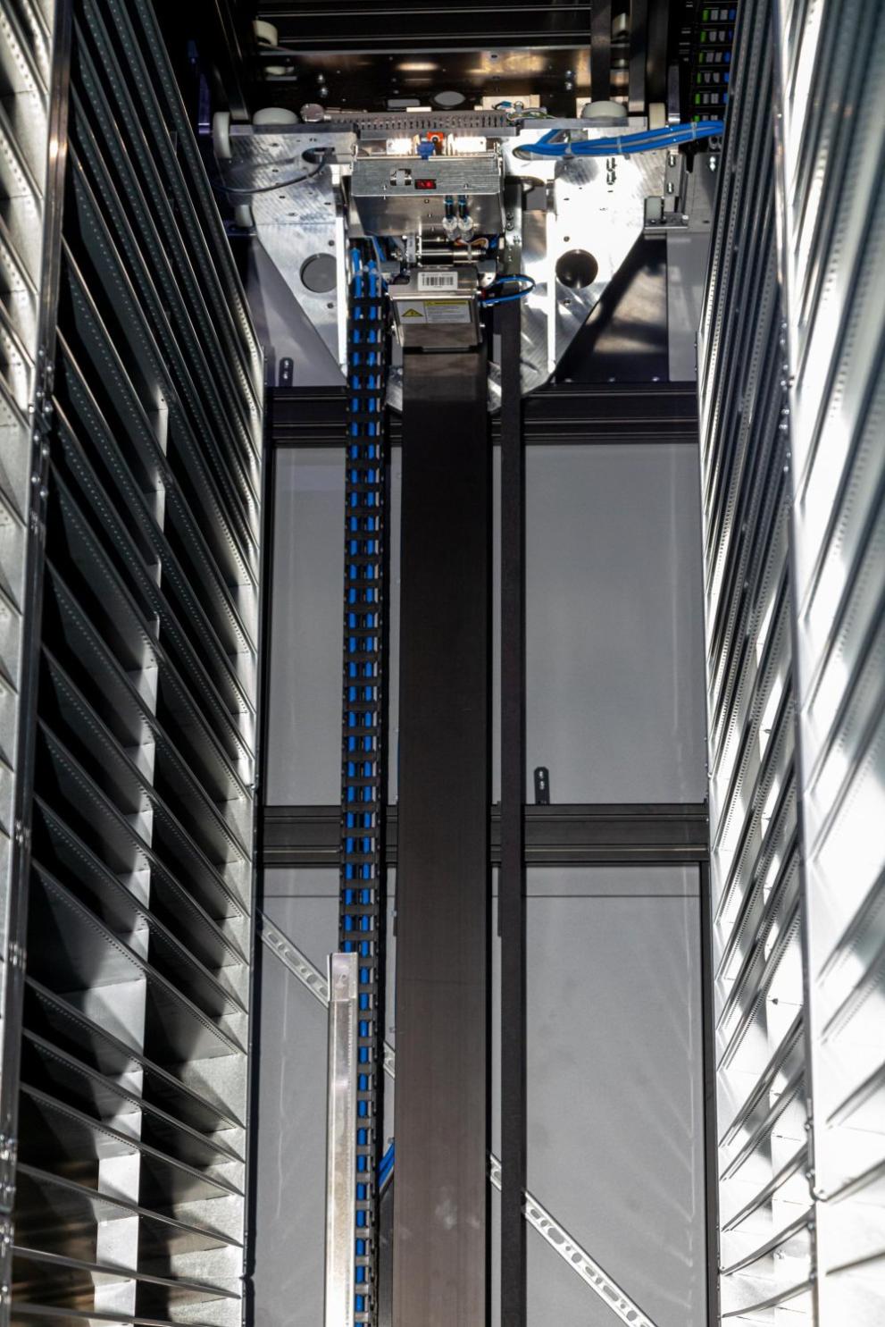 Получените медикаменти се изсипват в резервоар, от който автоматизирана ръка ги сканира и класифицира.