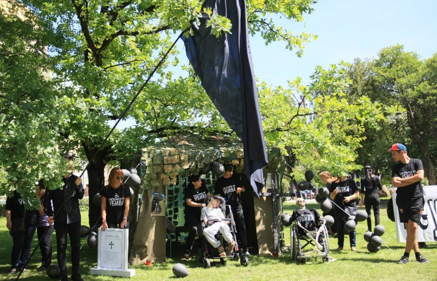 Родители на деца с увреждания провеждат палатков лагер пред постройката на Народното събрание за Деня на детето под наслов " Системата ни убива ".