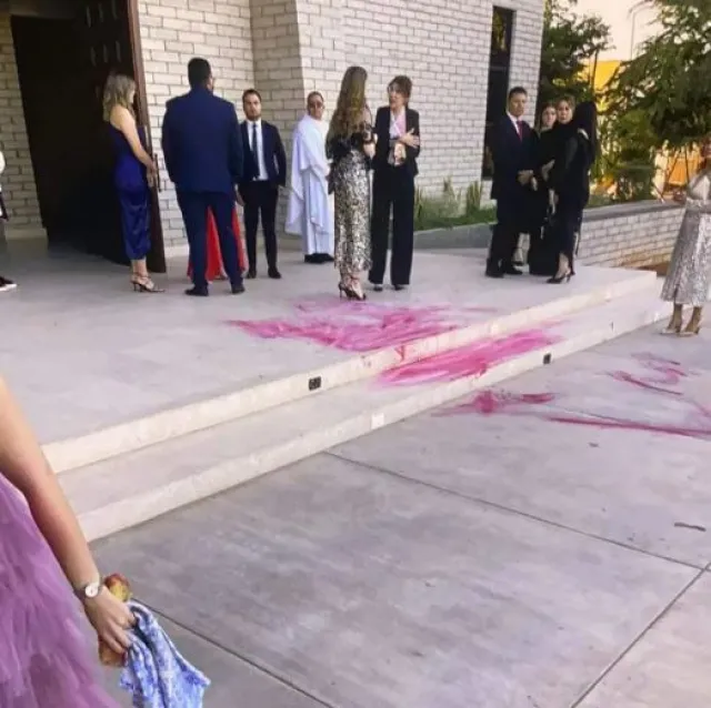 Докато стои пред църквата, хванала ръцете на татко си, булката ненадейно е напръскана с кървавочервена багра от двама наети мъже. Красивата ѝ бяла рокля към този момент била с червени петна, а огромна част от гостите мислели, че Александра е засегната и тече от нея кръв.