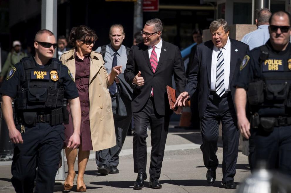 Словенската двойка не разяснява пред публицисти визитата, откакто прекара в постройката дълги часове. В институцията са офисите на федерални имиграционни представители, които оказват помощ на процеса по култивиране молбите за даване на американско поданство.