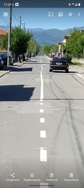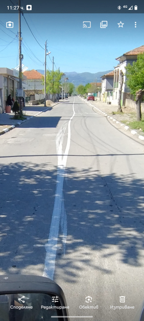 Новопоставена пътна маркировка в асеновградското село Боянци възмути локални поданици. От фотоси на свидетел се вижда криволичещата осова линия.