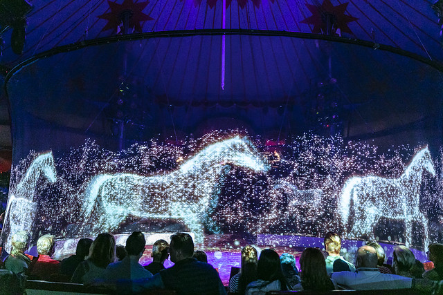 Бернард Пол, създател и шеф на цирк „ Ронкали ”, бързо се приспособява към тези настроения и предлага различно решение, което да не ощети качеството на спектакъла, а в противен случай, да го направи първия по рода си. С помощта на 11 лазерни проектора на сцената се изобразяват 3D холограми на слонове, коне и даже златна рибка, които могат да бъдат следени в цялата си хубост от всяко едно място в залата. Новото съоръжение коства на цирка повече от 450 000 евро.