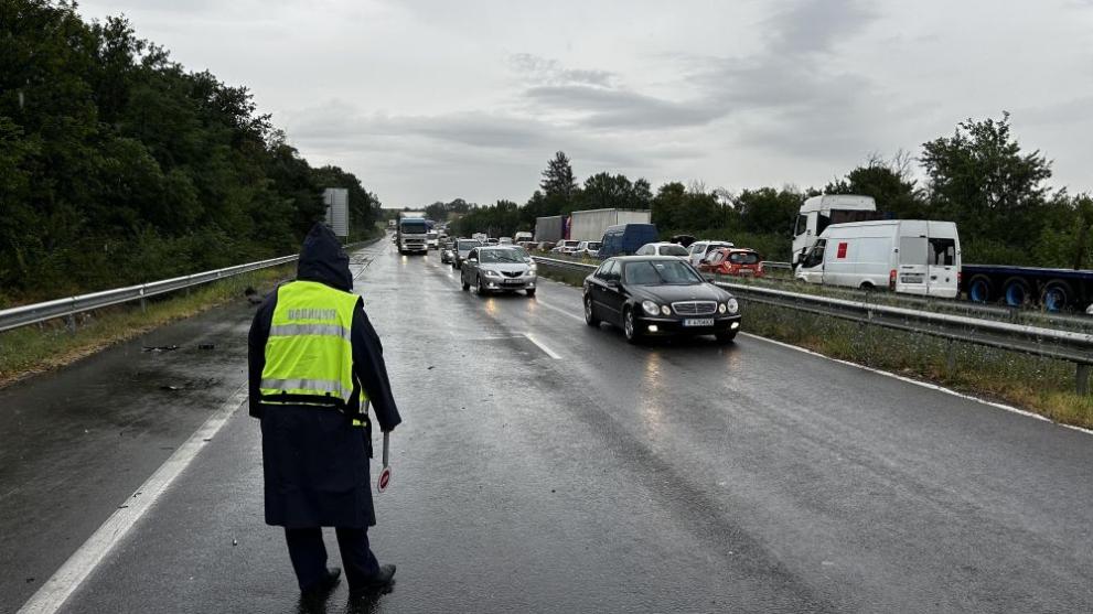 Булфото/Тихомир Петков С тях е пътувало и друго румънско семейство с бял джип. Междувременно в този миг в другото платно в посока към Димитровград се бе образувала 3-километрова опашка от коли.