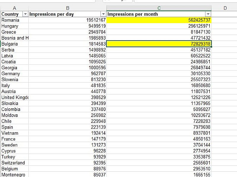 Те разгласяват данни за импресиите, които една от съмнителните компании с съветски притежатели е постигнала. " Първият ред демонстрира какъв брой импресии са нужни, с цел да се стане президент в Румъния на процедура. Цифрата против България демонстрира нещо, което сега не сме в положение да определим в какви мащаби се мери и какво отражение има ".