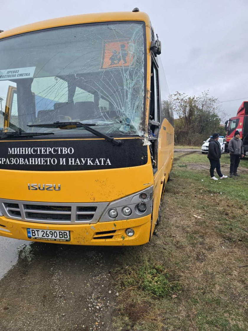 Румънски тир е блъснал училищен рейс, пренасящ 19 деца от Свищов за близките села. Леко потърпевши са две от децата.