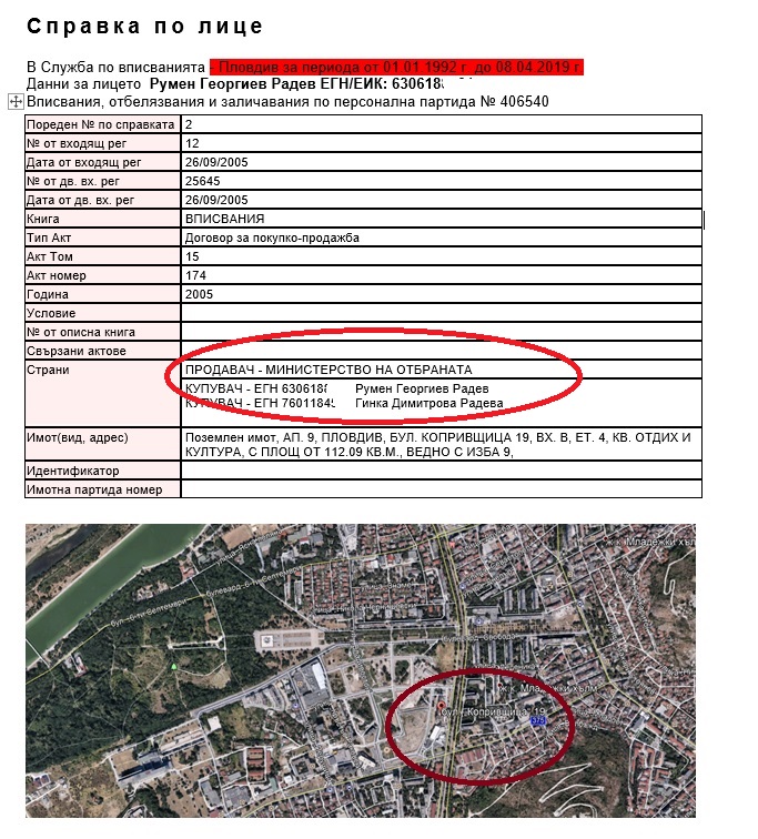 Продавач е Министерство на защитата. Жилището се намира на ул. " Копривщица " 19.