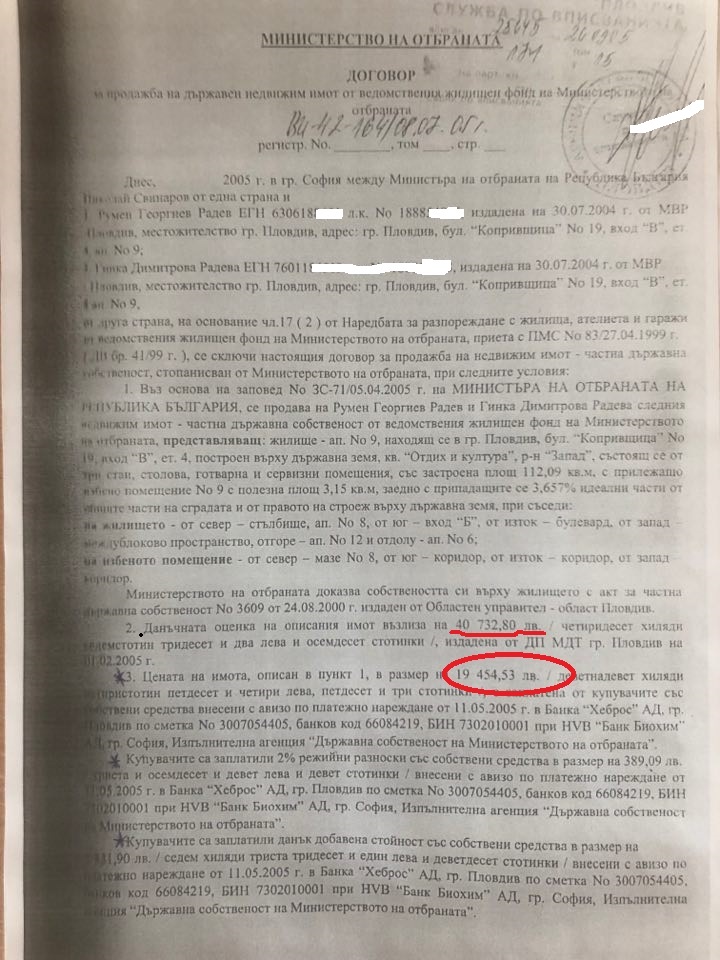 И това е единствено по документи. Брокерите подозират, че в нотариалния акт е посочена данъчната оценка на жилището. Реалната му пазарна стойност към 2007 година е над 128 000 лева, затова не можем да бъдем сигурни за същинската стойност на договорката и какъв брой тъкмо пари е прибрал президентът след бързата препродажба на ведомственото жилище.