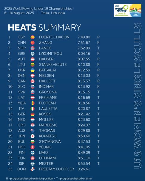 Румяна Стоянова ще гребе на 1/4-финал на скиф на Световното състезание по гребане за юноши и девойки до 19 години в Тракай (Литва).