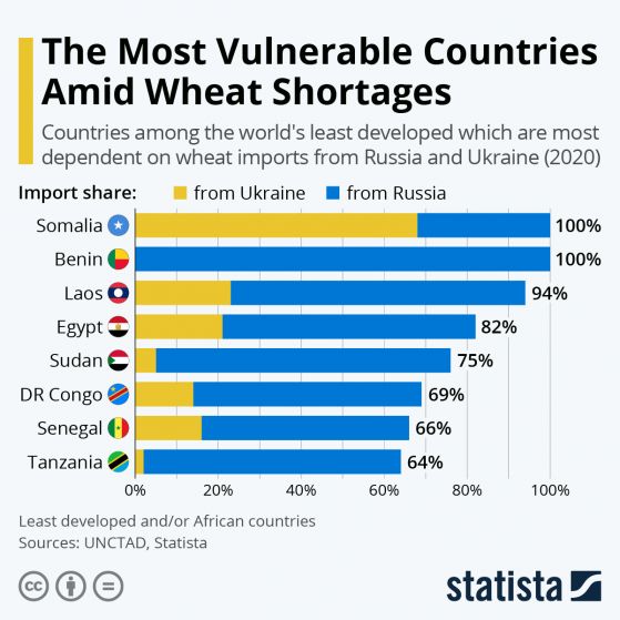 Според Организация на обединените нации Украйна и Руската федерация обезпечават 30% от пшеницата и ечемика в света. Заедно те доставят повече от една трета от пшеницата за 45 африкански и най-слабо развити страни.