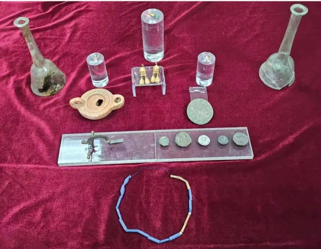 В гроба на детето откривателите откриват няколко артефакта, в това число чифт дребни златни обеци, бижута от стъклени мъниста, керамичен съд, употребен за предпазване на вино, и два стъклени съда, употребявани за събиране на сълзите на опечалените.