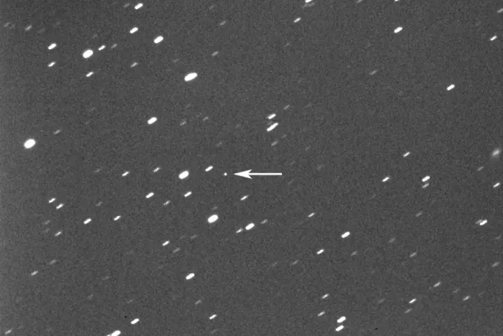 Астероидът, маркиран със стрелка от Джанлука Маси отVirtual Telescope Project. фотография: Twitter