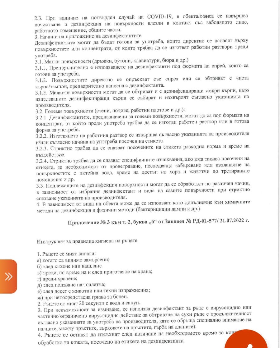 2. Всички работодатели би трябвало да провеждат провеждането на противоепидемички ограничения в работните пространства - проветряване, стерилизация, инструктаж на личния състав за персонална хигиена, основаване на организация за отдалечена работа където е допустимо.