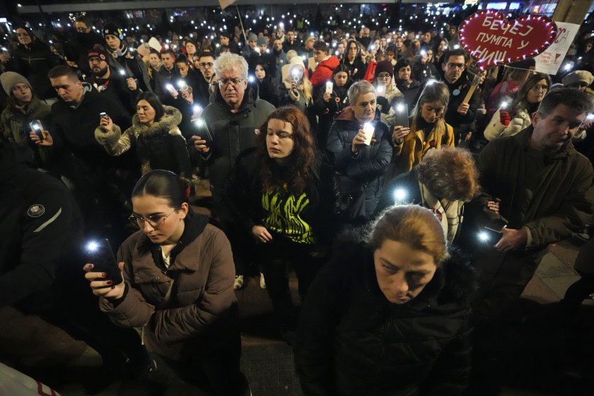 С 15 минутно безмълвие, тъкмо преди среднощ, участниците в блокадата на сръбския град Ниш уважиха паметта на починалите при нещастието в Нови Сад.