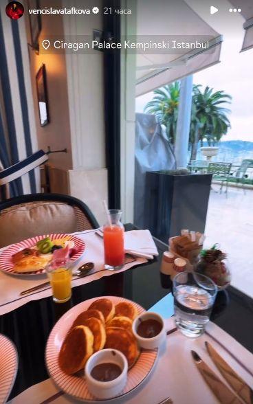 Тафкова се любува на спираща дъха панорама към Босфора, само че приказката не свършва дотук. Като една същинска турска принцеса, родната моделка е глезена с похвали от хотела по случай рождения й ден. Бутикова торта с приветствена картичка, първокласно пенливо вино и богата закуска с панорама към протока са единствено част от великодушните изненади, с които певицата се похвали в мрежата.