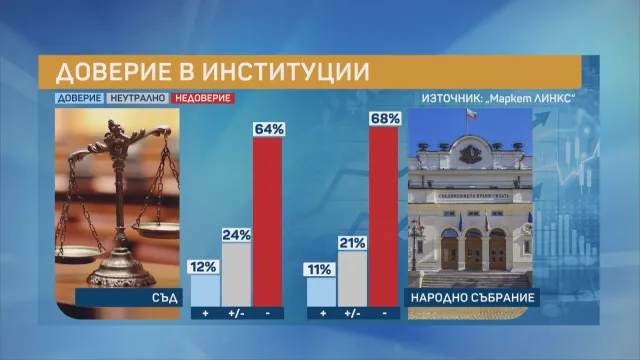 Доверието в институциите също бележи леко покачване от 9% към този момент имаме 11% по-висок рейтинг на Народното събрание.