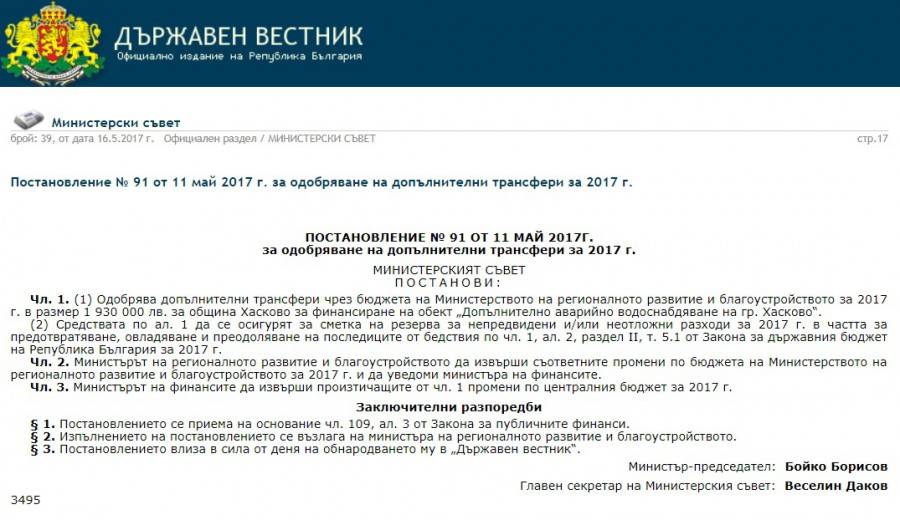 Девет месеца по-късно кметът на Хасково пусна поръчка за допълнително водоснабдяване