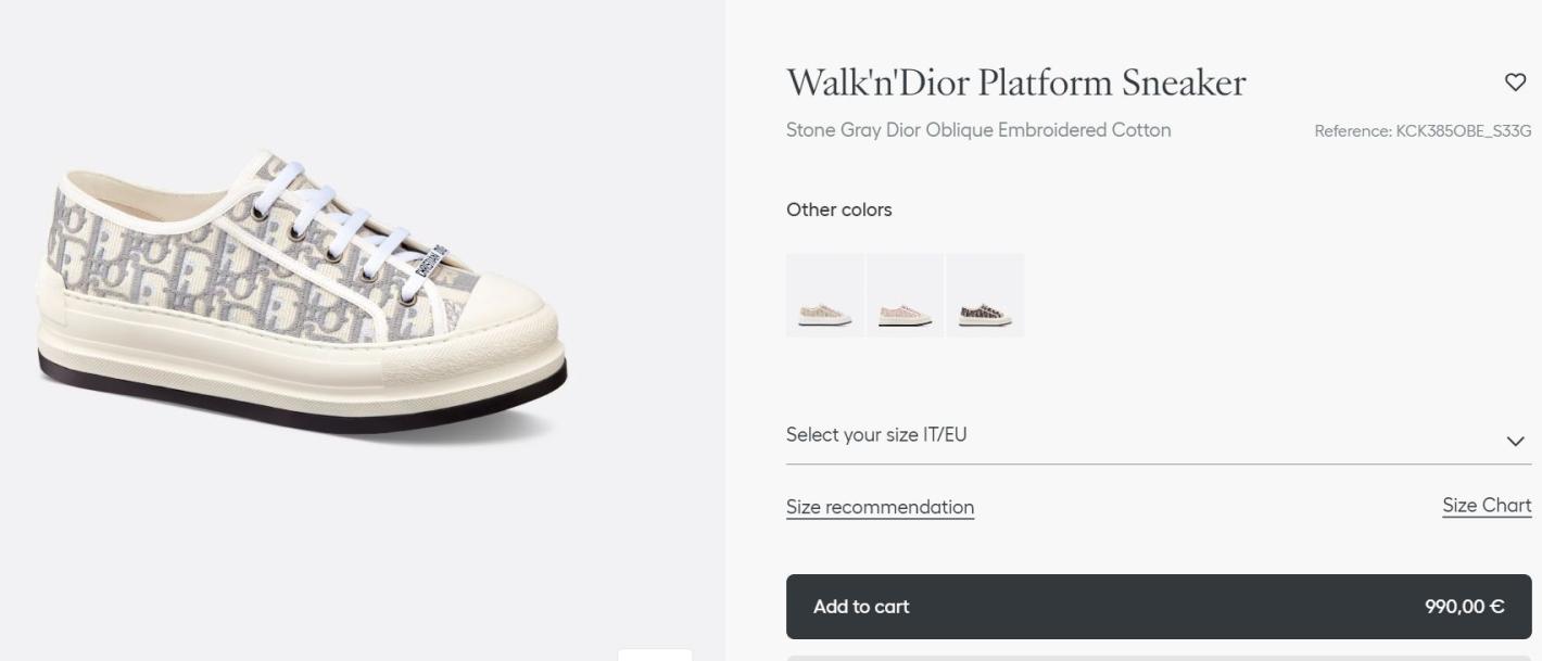 Въпросните сникърси са доста съвременни последно време и могат да се намерят на уеб страницата на „ Диор “ против скромните 990 евро, или близо 2000 лв..