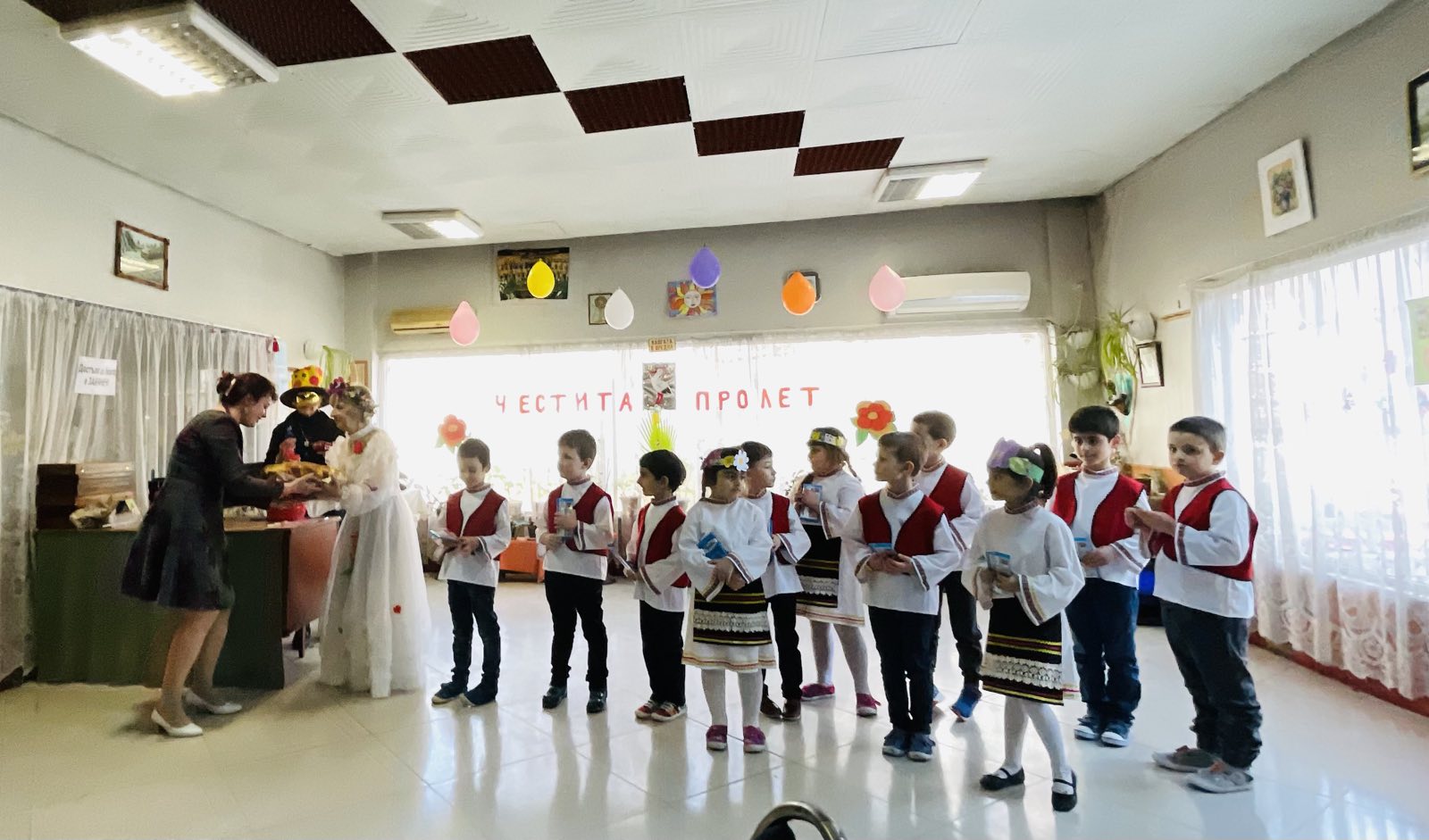 В началото на празненството децата от ОУ „ Петър Берон “ зарадваха пенсионерите с благ пролетен концерт и ги изненадаха с подарък – обичайната българска питка.