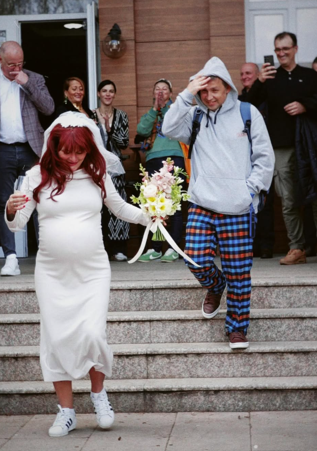 В профила си във Facebook тя показа фотография от щастливото събитие. На фрагмента се вижда, че в деня на подписването Рут е, облечена в бяла рокля и кецове, а брачният партньор й с долнище на пижама и суитшърт с качулка.