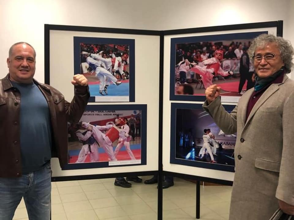 С военен привет " Taekwon " от студентите и част от националите по таекуондо бяха посрещнати гостите на откриването на фотоизложбата " Моменти на слава”, отдадена на спортни гении от България и Корея. На събитието, проведено взаимно сред Посолство на Корея и НСА участваха зам. министърът на спорта Стоян Андонов, Президентът на БФТаекундо Слави Бинев, зам ръководителят на федерацията Димитър Михайлов, ръководителят на Световната Про Таекуондо Федерация господин Банг, който е в България по покана на господин Бинев, посланикът на Корея Н.Пр. Джеонг, държавни представители и спортни първенци.