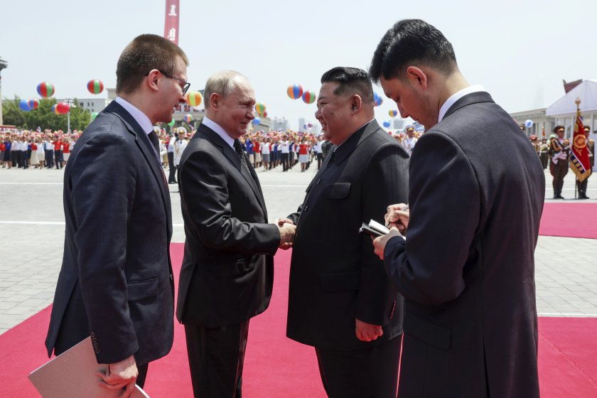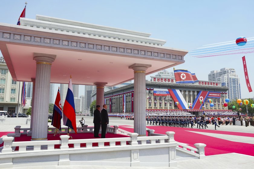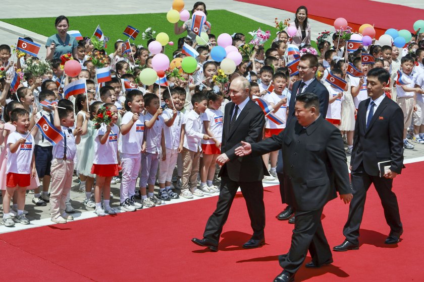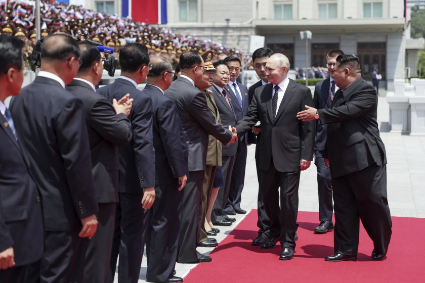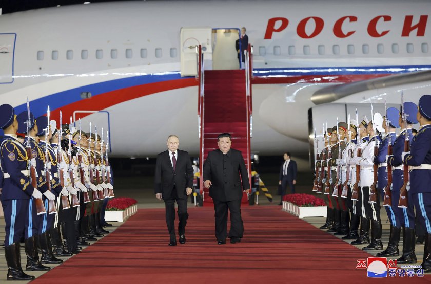 С червен килим, военни почести и доста искра - по този начин посрещнаха в Пхенян съветския президент Владимир Путин. Той е на първото си от 24 години посещаване в Северна Корея, а диалозите му с Ким Чен-ун ще продължат два дни.
