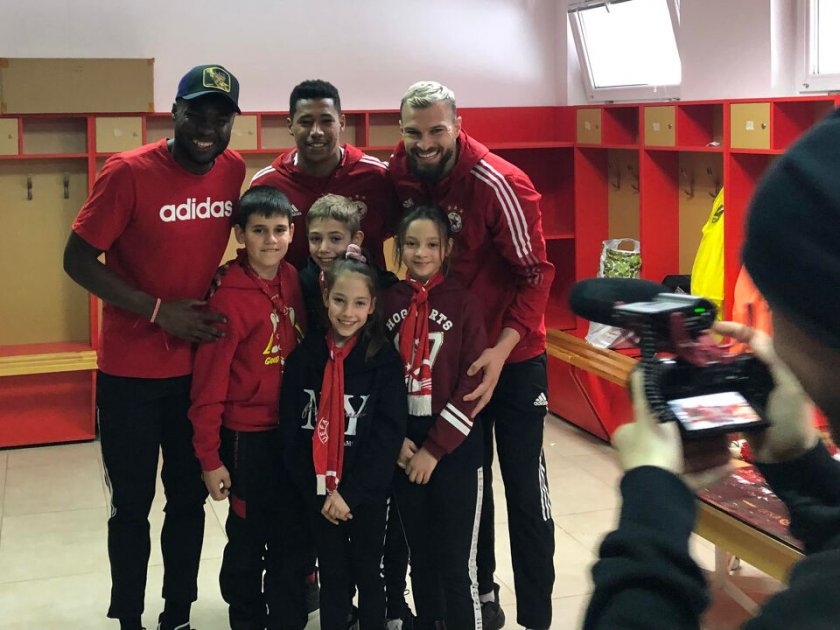 Самите футболисти, отпред с националите Иван Турицов и Георги Йомов, откровено се зарадваха на детската изненада, а мартеничките в клубните червено-бели цветове одобриха като добър знак за шанс и триумф за идната футболна пролет.