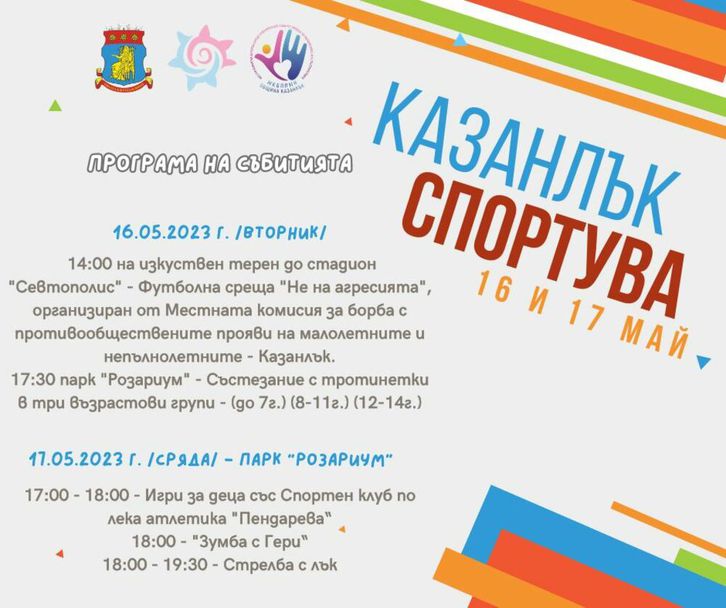 Съорганизатори на спортните начинания са Община Казанлък и МКБППМН.