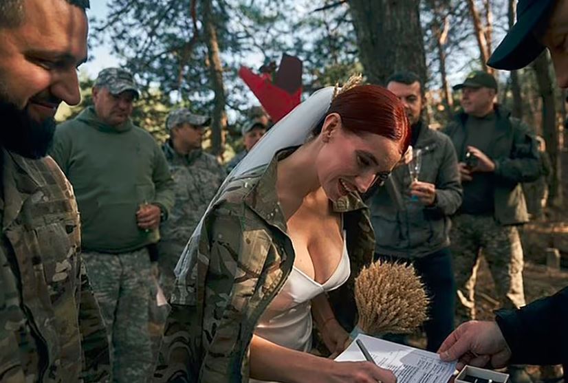Сватбата се организира единствено дни след голям залп от съветски ракети и ирански дронове камикадзе, ориентирани към съвсем всеки огромен украински град, унищожавайки инфраструктура и убивайки цивилни.