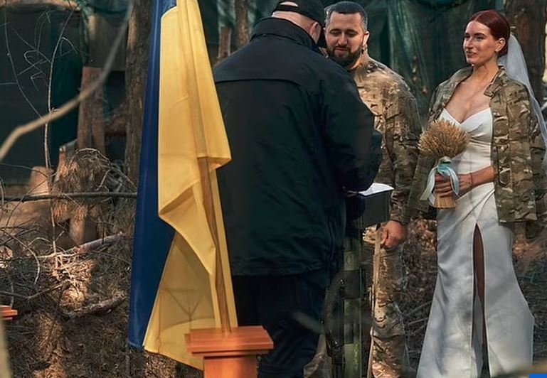 Двойката се e оженила в гора в Харков в петък, формален празник, прочут като Ден на бранителите в чест на украинските военни ветерани.