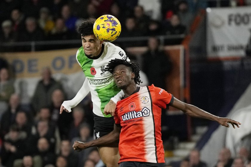 Ливърпул се спаси от загуба от новака Лутън с гол на Луис Диас в добавеното време
