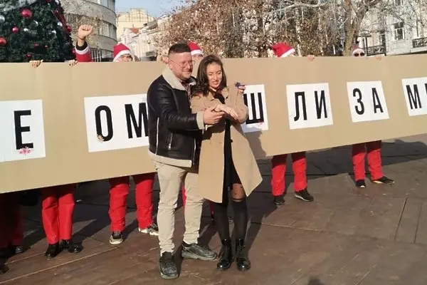 Станислав Сивков предложи сватба на обичаната си Катрин Тасева, като падна на коляно и сервира пръстен. Групата от над 10 негови другари, облечени като Дядо Коледа, държаха надписа: „ Ще се омъжиш ли за мен? “