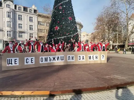 За да взе участие в изненадата, групата на Дядо-Коледовците чака повече от половин час на площада, като усърдно се криеше от очите на влюбената двойка.