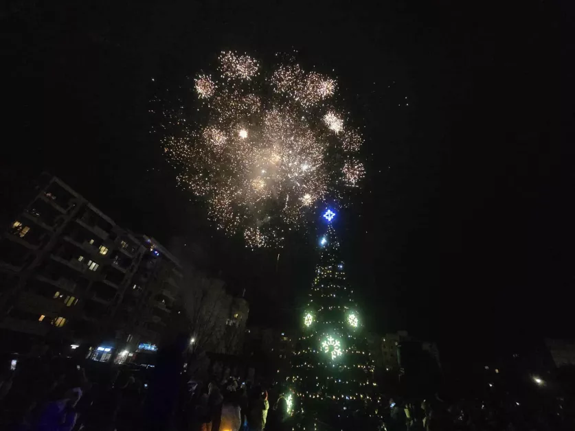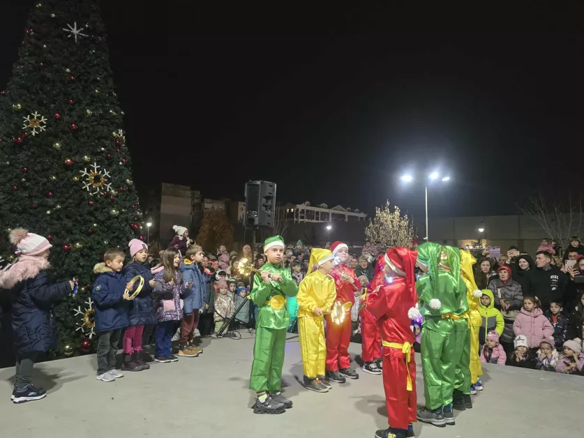 В 19 часа кметът Георги Гатев благодарение на присъстващите деца отброиха от 10 до 1 и възпламениха празничните светлини на красивата коледна елха.