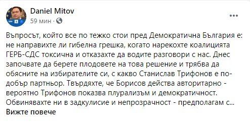 Ето какво написа Даниел Митов във фейсбук:
