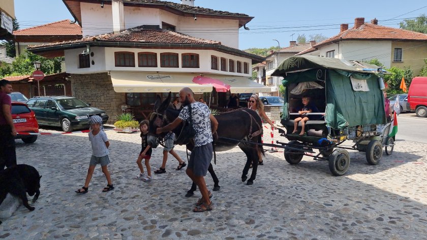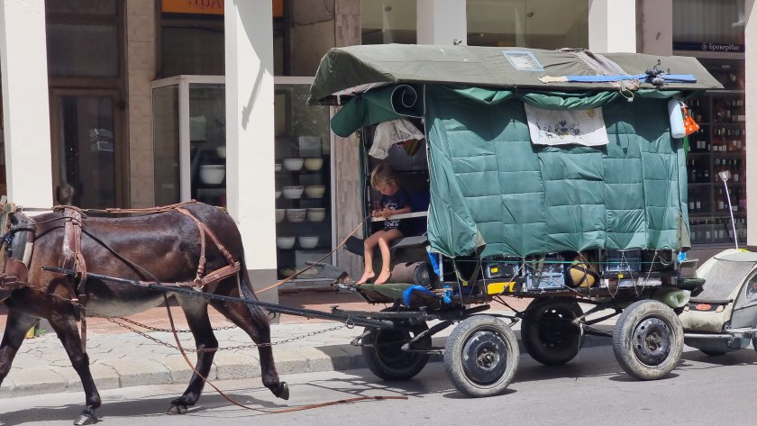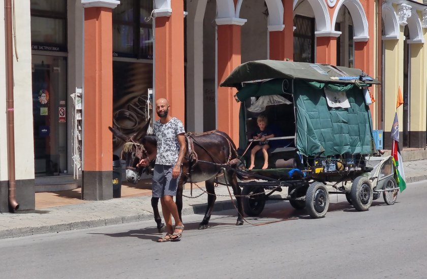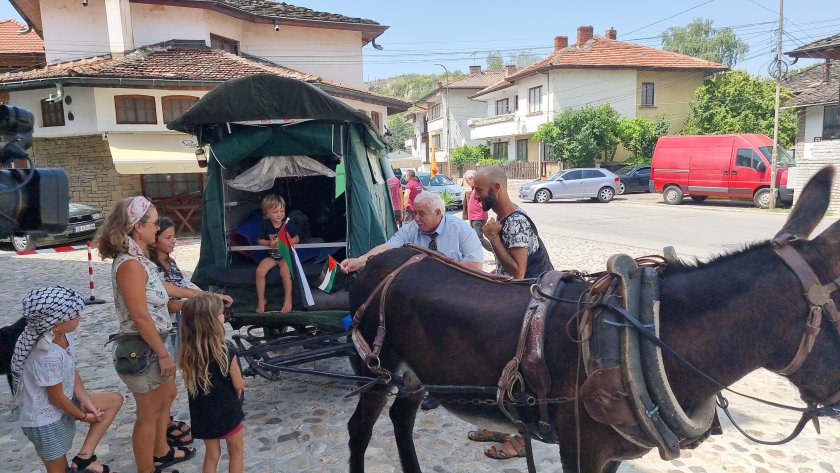 С каруца, теглена от магарето Нина, семейство с четири деца пътува от Франция за Палестина. Пътешествието им почнало преди две години, а през днешния ден ги докара в Ловеч.