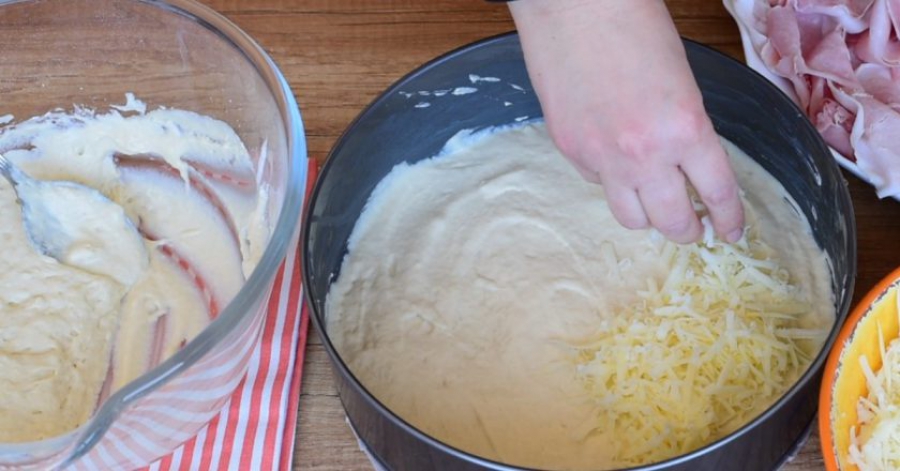 5. След това наредете пласт настърган кашкавал и шунка.