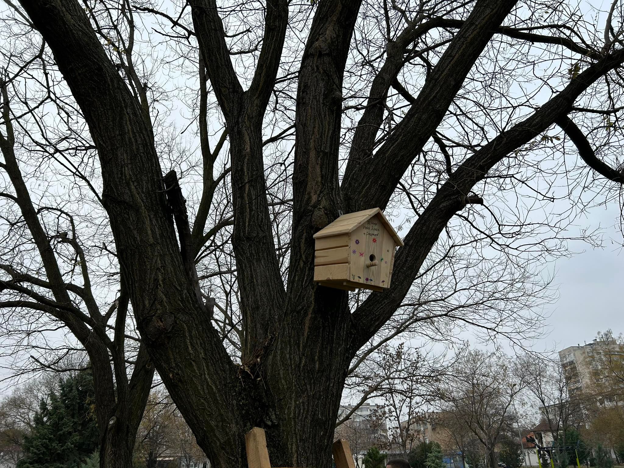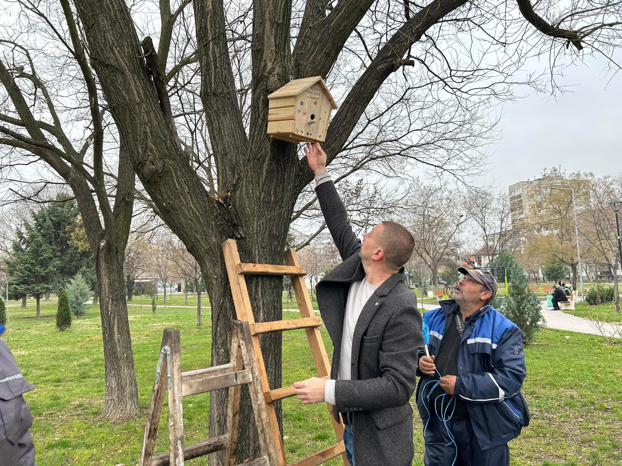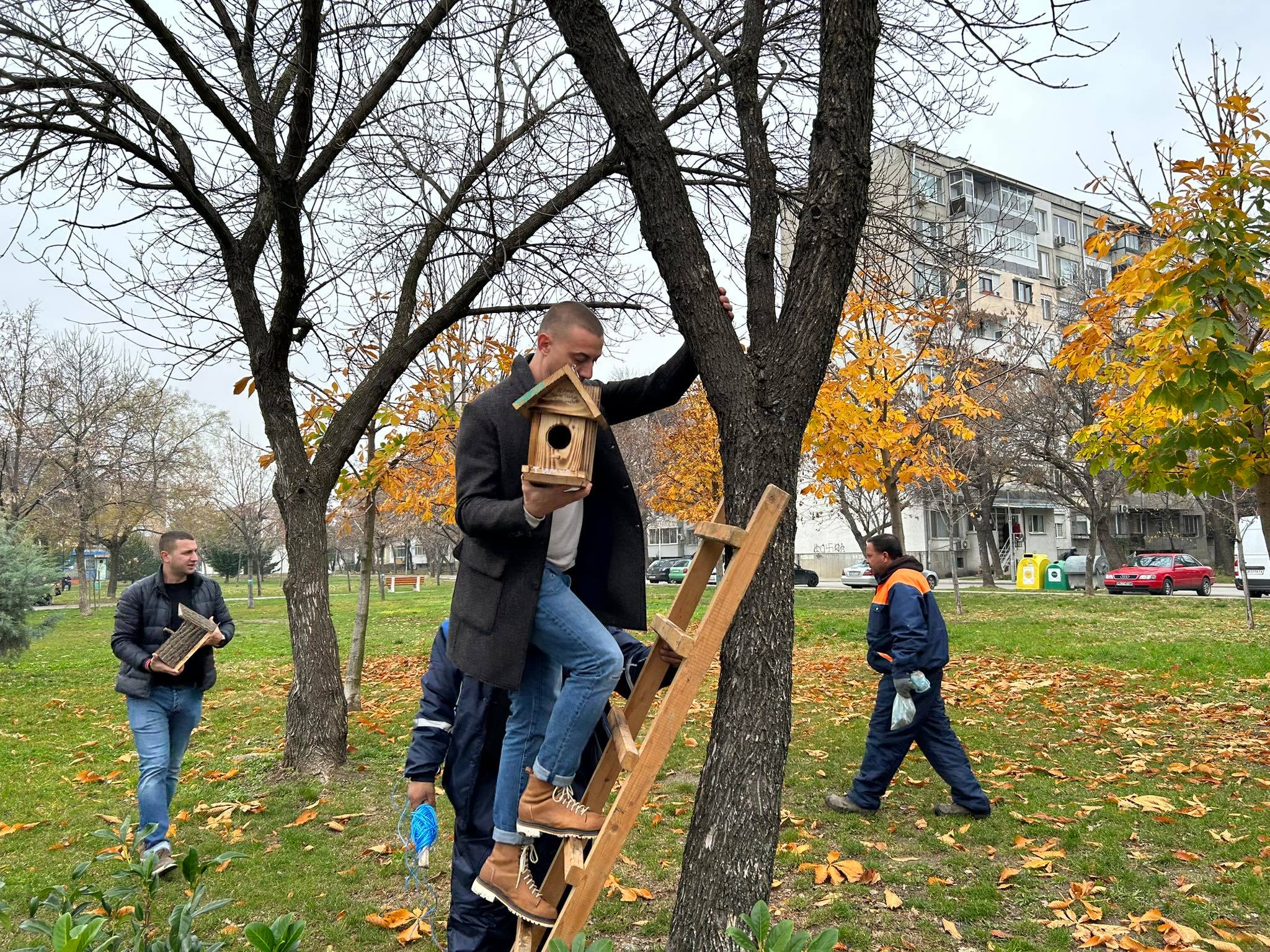 Деца от ДГ „Елица“ поставиха къщички за птици в парк „Ружа“