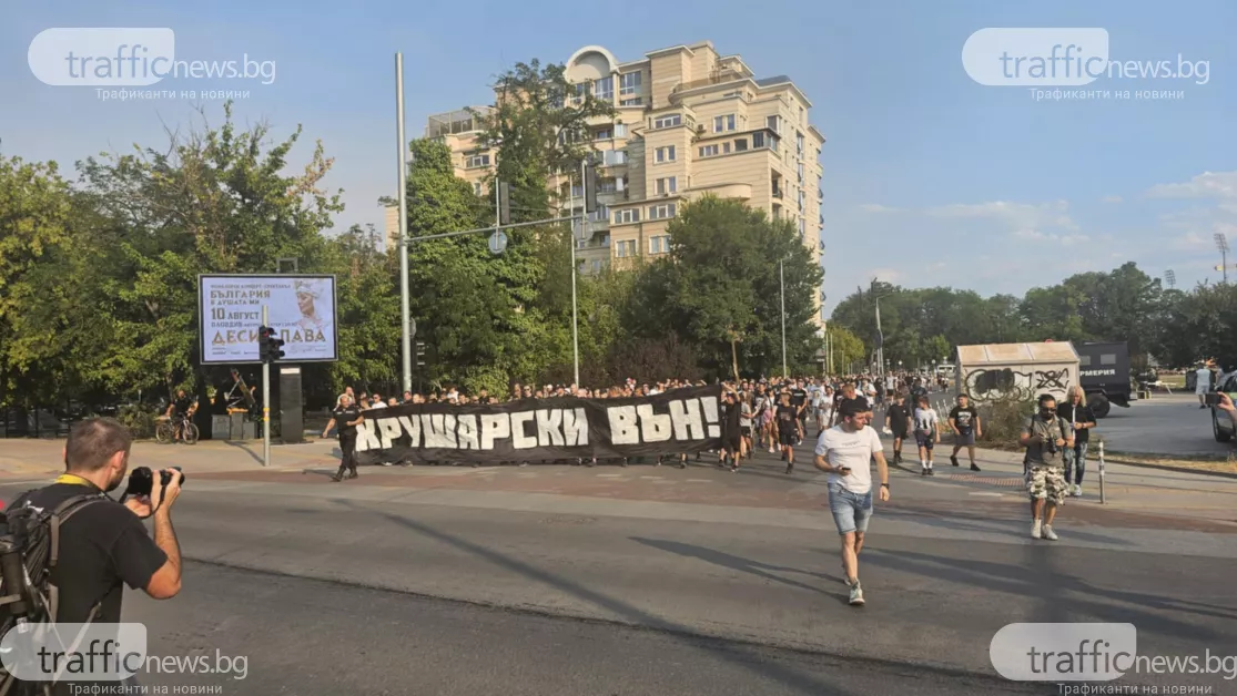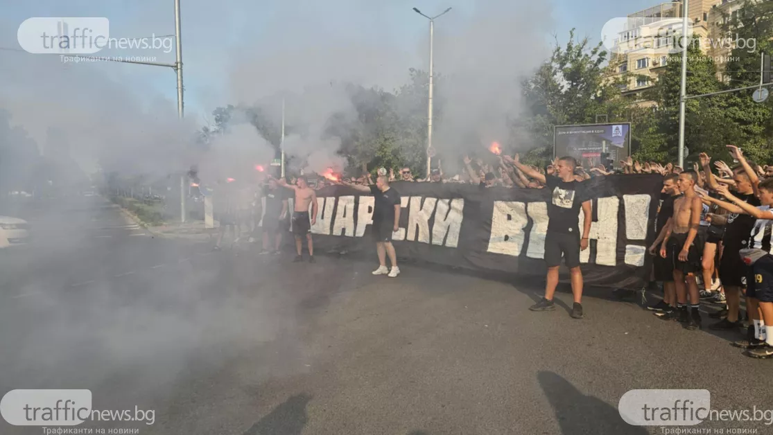 “Крушарски вън“: С факли и бомбички фенове на Локо излязоха на протест, блокираха възлово кръстовище