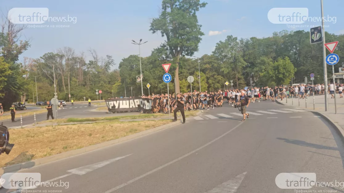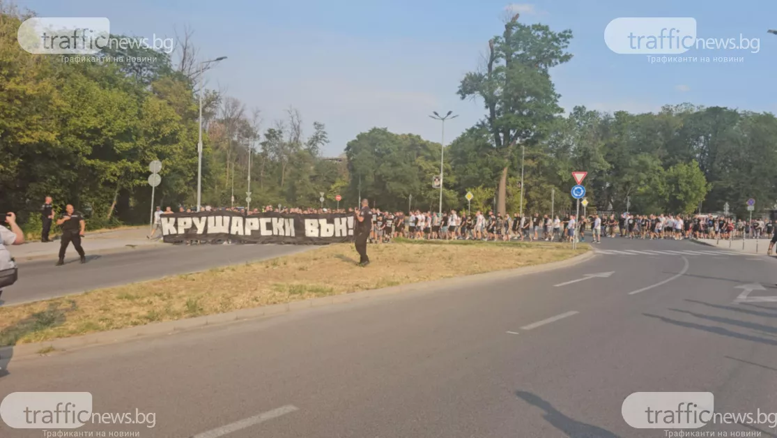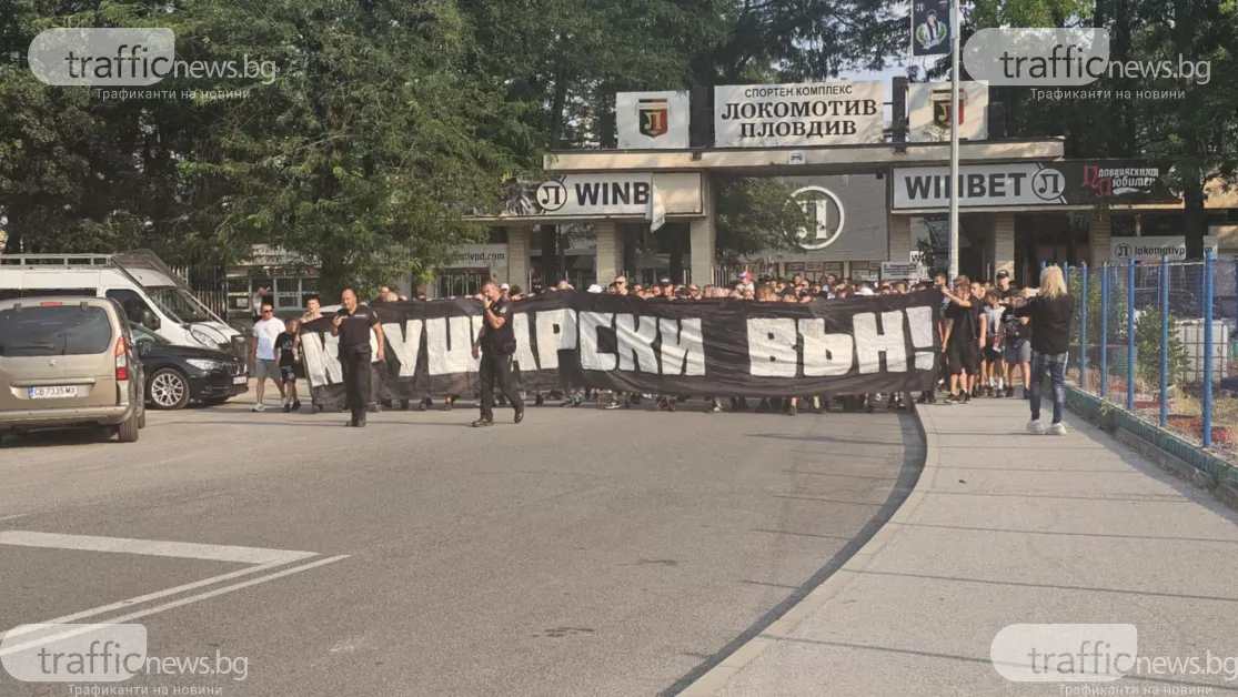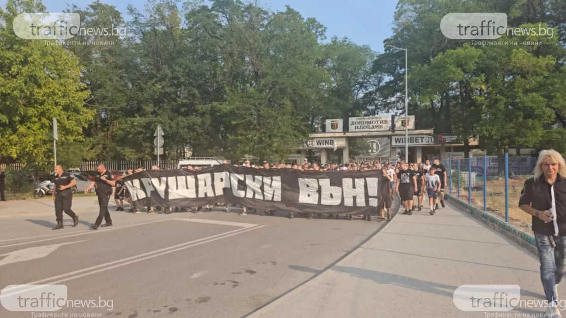 С " Крушарски вън " факли и бомбички, черно - белите почитатели показаха недоволството си от ръководството на Локомотив и приканиха притежателят Христо Крушарски да напусне, предава кореспондент на TrafficNews . Запалянковците се събраха тъкмо в 18:00 часа пред касите на стадиoна, откъдето стартира шествието и стигна до кръстовището сред бул. " Санкт Петербург " и ул. " Лев Толстой ".