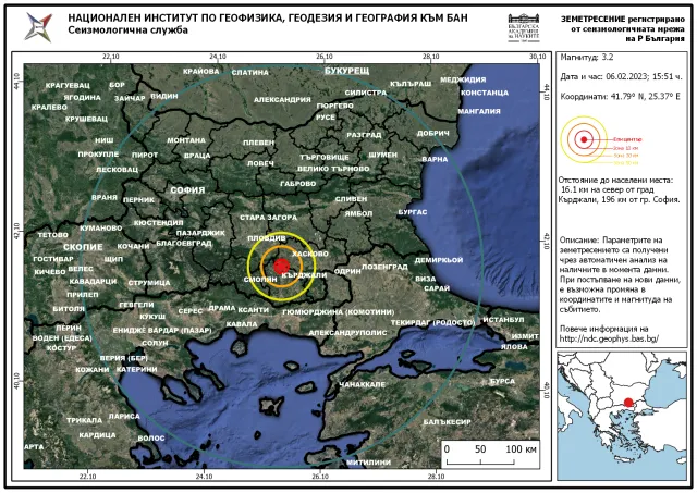 с магнитуд от 3,2 е усетено в Кърджали този следобяд. Трусът е регистриран от Националния институт по геофизика, геодезия и география към Българска академия на науките.