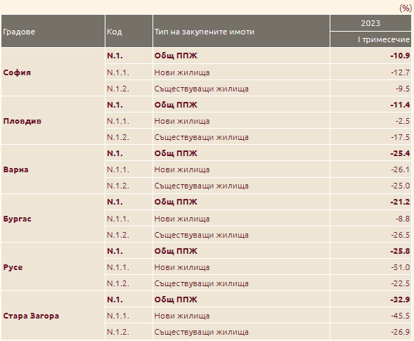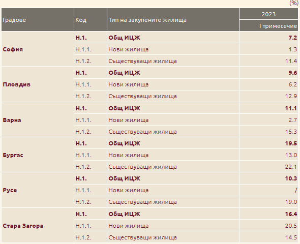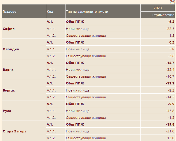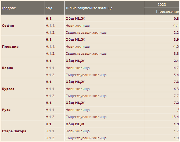 Ако съпоставим данните за януари - март 2023 година, по отношение на същия интервал на 2022 година, общото повишаване на жилищата е 9,6% на годишна база, като то е едвам 6,2% при новото строителство и 12,9% при съществуващите жилища.